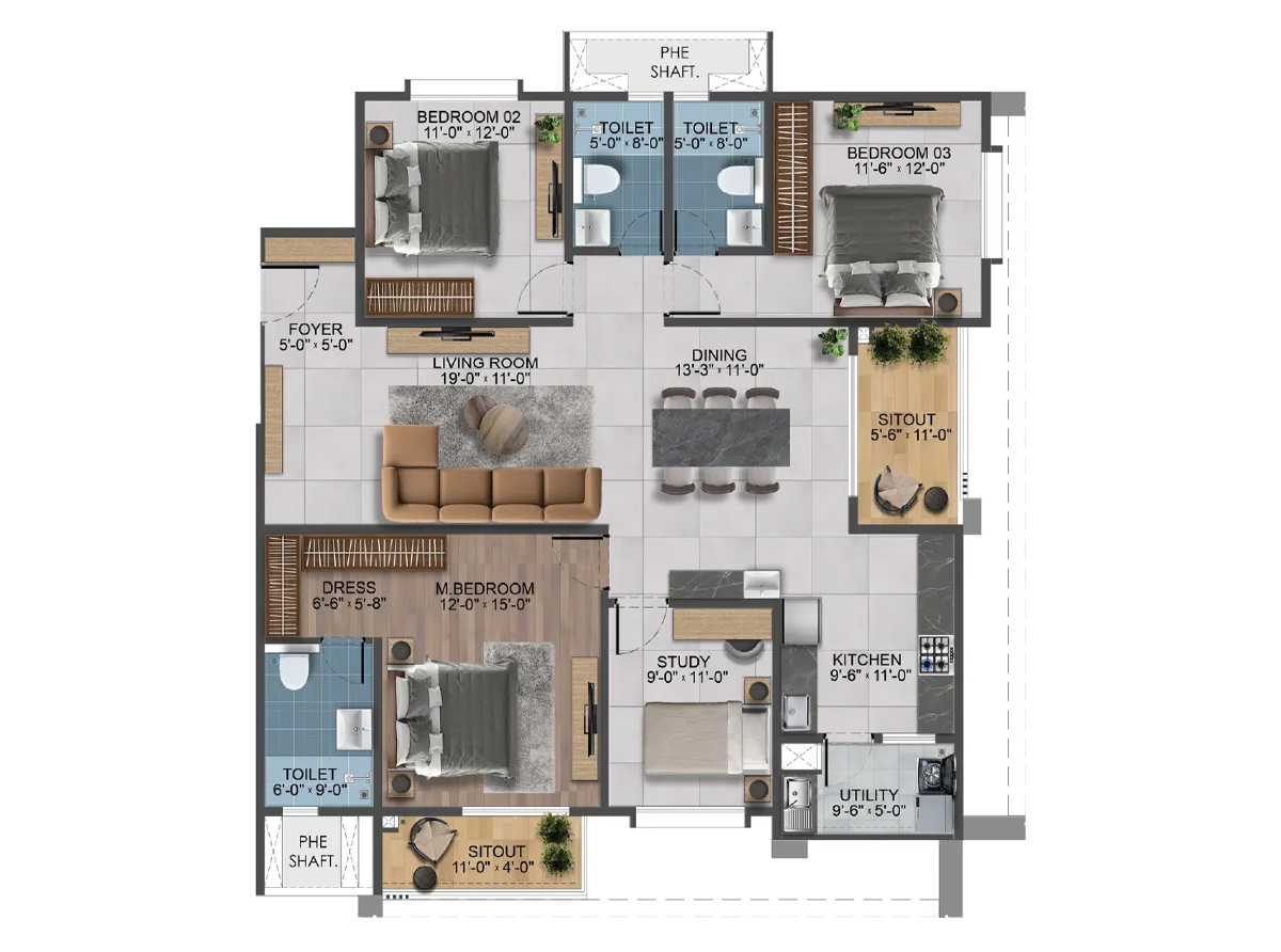 | 3 BHK | 1563 - 1829 Sq.ft. (Carpet Area) | ₹ 2 Cr* |
